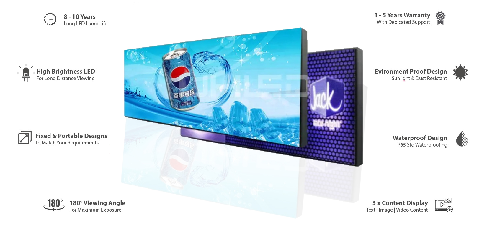 Designed to endure a range of weather conditions, Outdoor Fixed LED Displays merge resilience with exceptional image quality. These displays are perfect for a variety of outdoor commercial applications, including dynamic advertising and outdoor events. Whether you require high brightness, a sleek cabinet design, pixel pitches ranging from P2.5 to P16, or an IP65 rating for protection against water and dust, the MAINTEL outdoor fixed LED displays fulfill all your requirements.